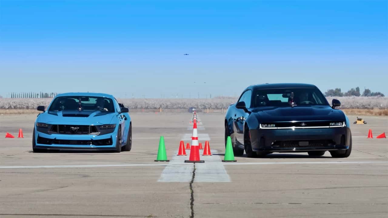 In the case of the Dodge Charger Daytona EV versus the Ford Mustang Dark Horse, the answer is nope. Even though, on paper, the ‘Stang has a superior power-to-weight ratio, Dodge’s electric muscle car can still take it down.